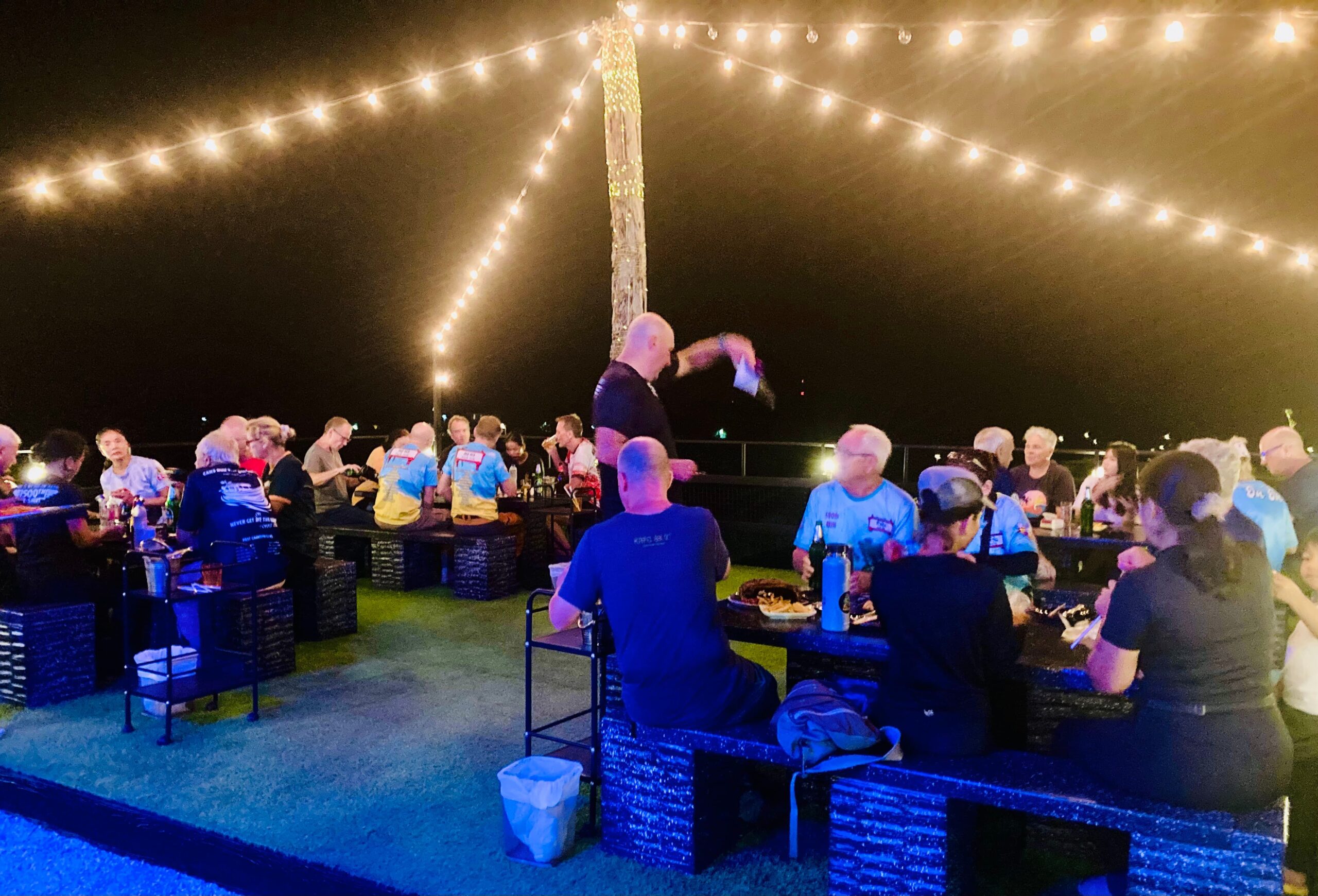 After the trail is finished, we gather around in a circle, welcome new friends, and welcome back old friends. Then we drag people in and make fun of whatever dumb things they did that day on the trail. If we have first time hashers, we give them a little ceremony, and when it’s all done we say goodbye to any departing friends and then we go to dinner together, where the fun continues.